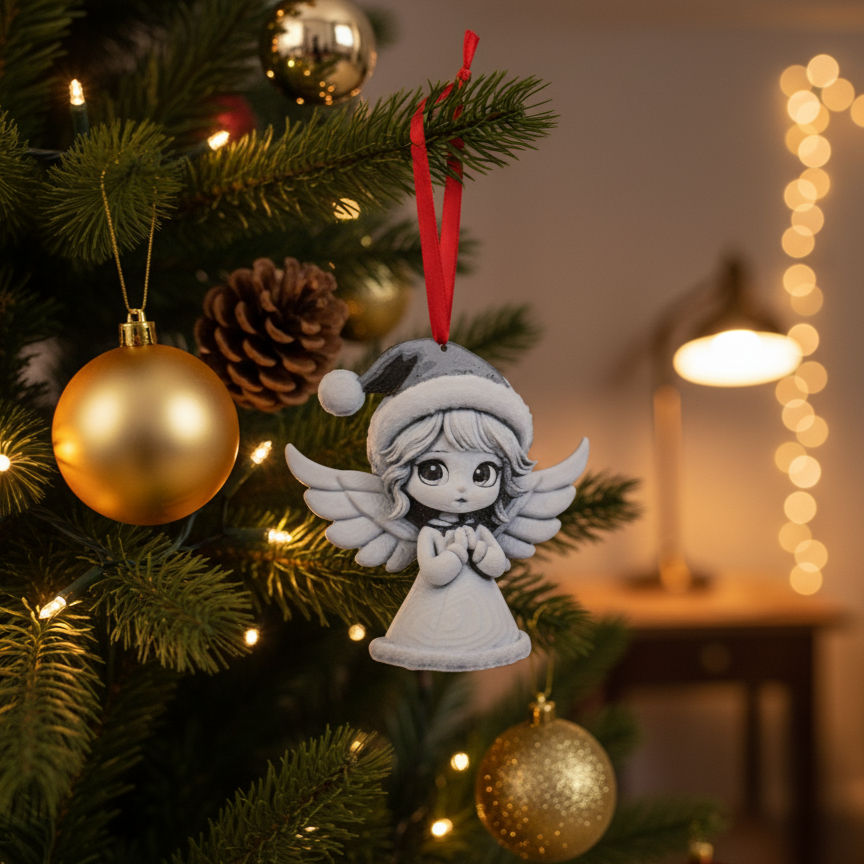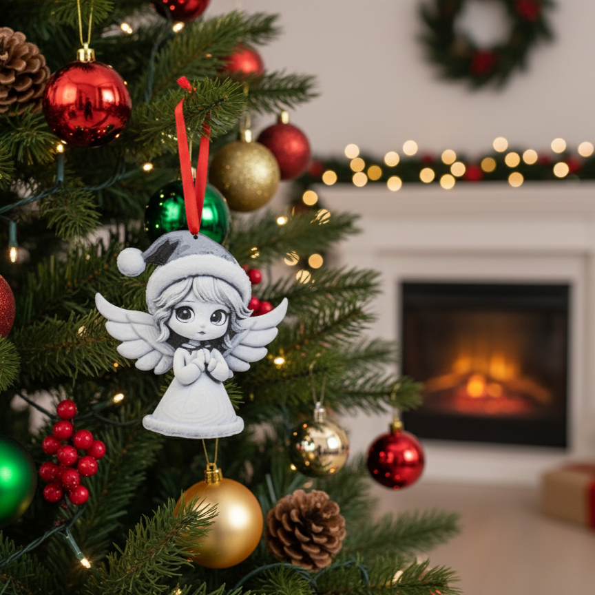 Adaugă o notă de delicatețe și magie bradului tău de Crăciun cu această decorațiune adorabilă, patru îngeri drăgălași cu căciuliță de Moș Crăciun!